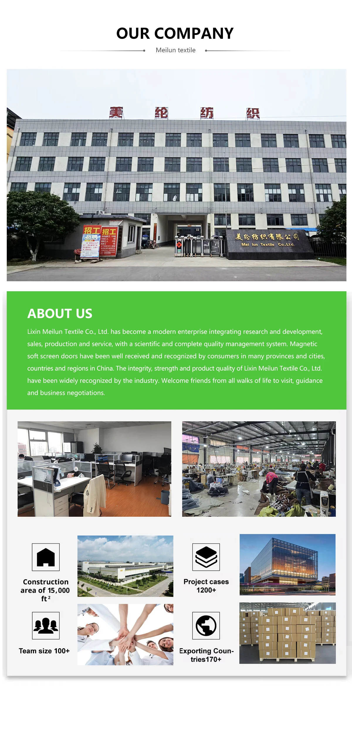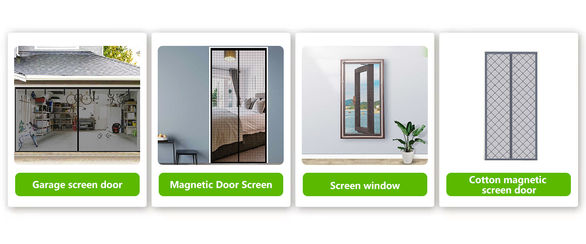 Prodotti principali: Schermo in fibra di vetro magnetico repellente per zanzare, zanzara repellente magnetico in poliestere, globo uragano, porta a schermo magnetico, porta zanzariera del Garage